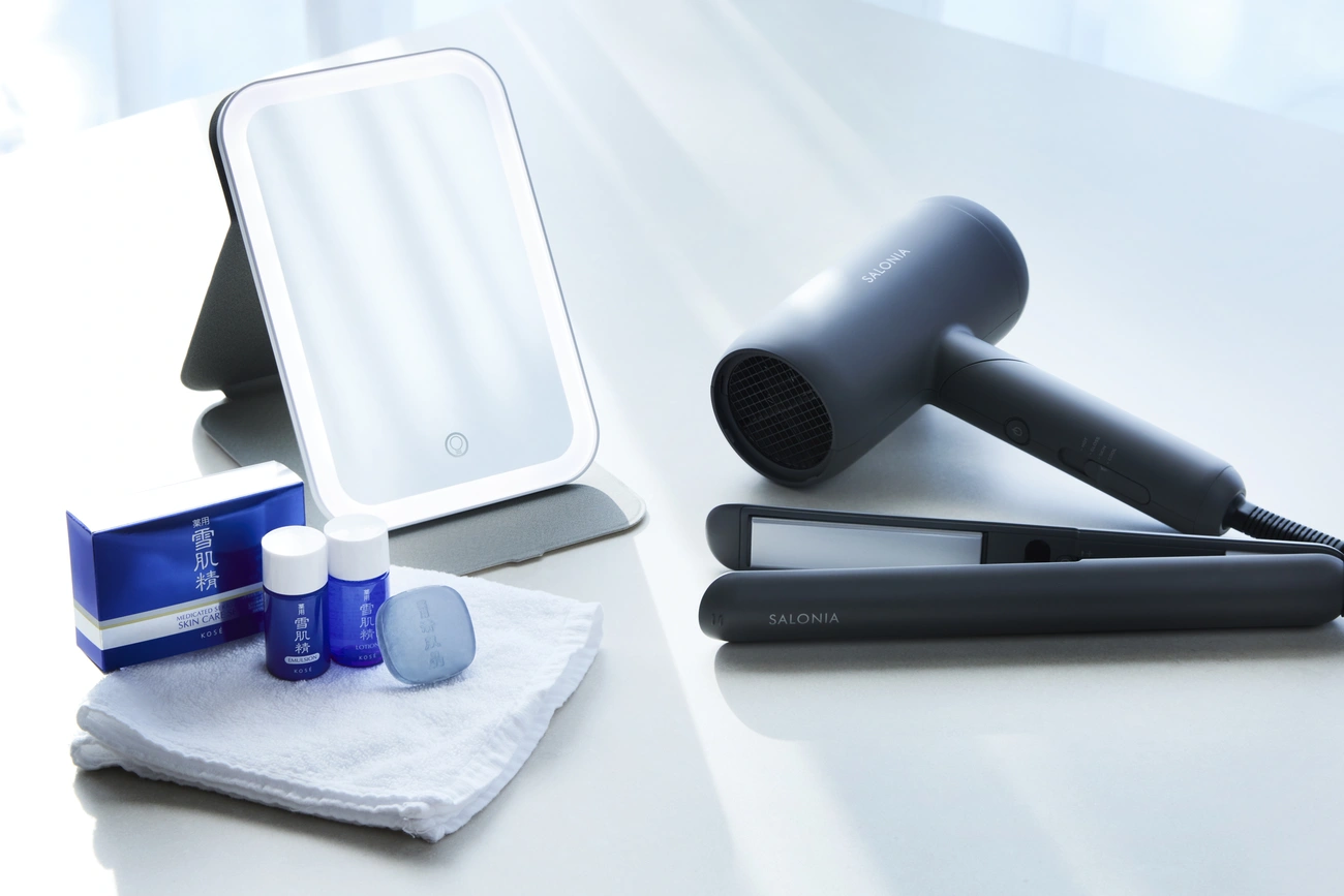 SALONIA의 헤어 다리미, 헤어 드라이어와 "여배우 미러"를 갖춘 슈페리어 룸을 1실 한정으로 준비했습니다.